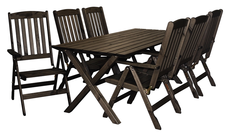 Till det 190 cm långa bordet kommer 6 st Oliver positionsstolar som är ställbara i 7 positioner. Dessa stolar kan även användas som solstolar.