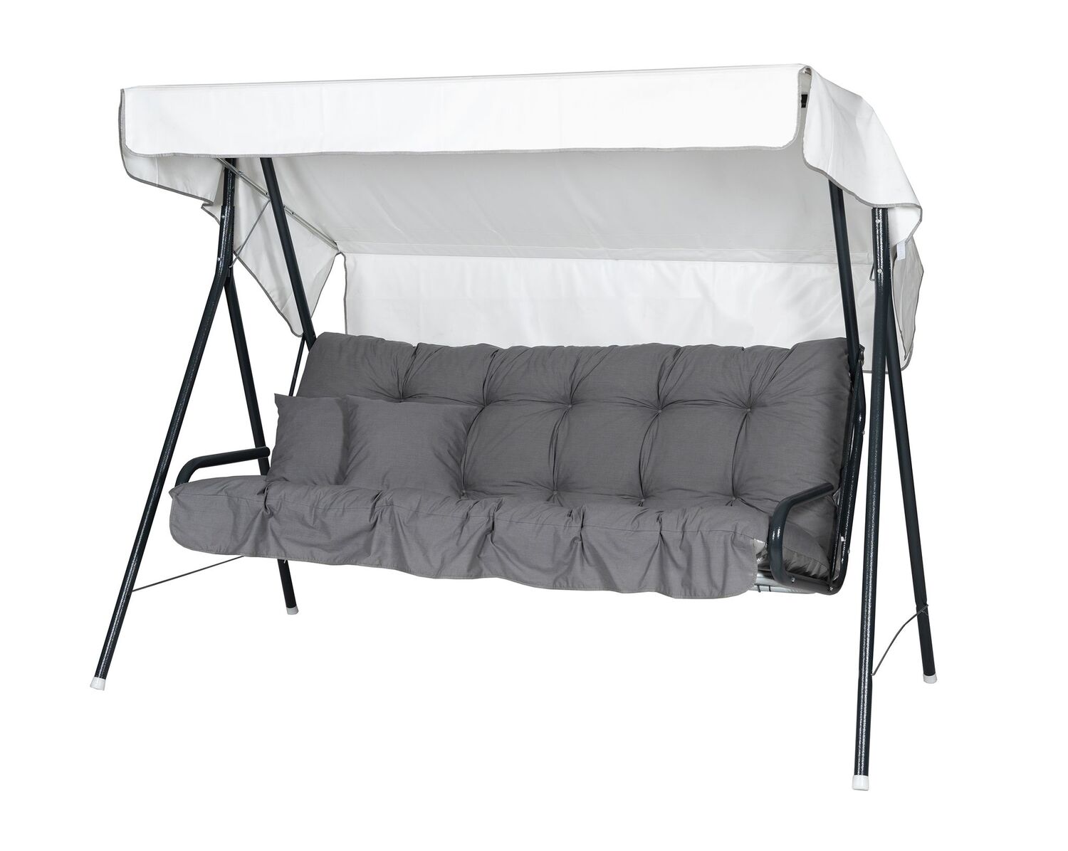 Ge uteplatsen en fräsch, naturnära känsla med Hammock Suvi 3‑p, klädd i dessa grå dynorna . Den grå pulverlackerade stålrörsstommen – behandlad med Bonderite® för extra hållbarhet – ger hammocken en stabil och trygg grund, medan rygg- och sitsdel i förzinkat metallnät bidrar till både styrka och ventilationsförmåga.